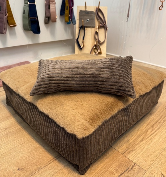 Nasze posłania charakteryzują styl oraz wysoka jakość wykonania. Pokrowiec wykonany z wysokiej klasy weluru z wstawką z bardzo przyjemnego i miękkiego sztucznego futra. Wewnątrz znajduje się poduszka wypełniona kulką silikonową. Posłania są dostępne w kilku rozmiarach oraz kolorach. Ozdobne obszycia dodają posłaniu estetycznego wyglądu i wzmacniają jego konstrukcję. Suwak wszyty w legowisko umożliwia wygodne pranie pokrowca.